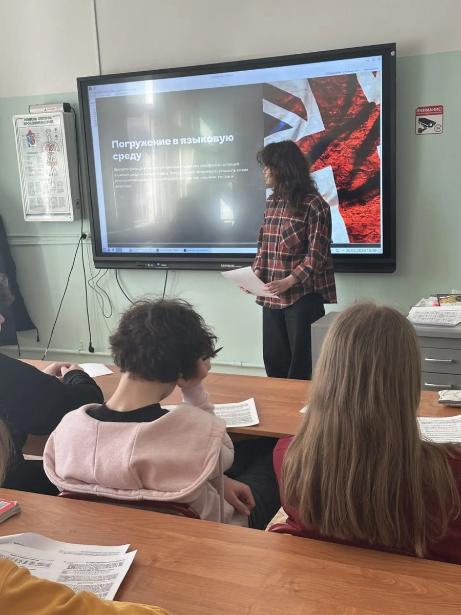 ! Декада науки в школе 1358 Кто сказал, что подготовка к проекту — это только ночи над книгами? Ученица 9"Н" класса Полина решила доказать обратное! Тема её проекта: «Изучение английского по фильмам и сериалам». 🎥 Это было невероятно интересно слушать! Она рассказала, как субтитры влияют на восприятие, почему нельзя смотреть всё подряд и как выучить 100 новых слов за одну серию «Шерлока» или «Очень странных дел». 👏 Полина защитила проект на отлично! Главный вывод: если процесс приносит удовольствие, результат не заставит себя ждать. 🌟Теперь знаем, чем заняться на каникулах с пользой для ума. 😉 ❓ Вопрос залу: Вы смотрите фильмы в оригинале или предпочитаете дубляж? Анна Александровна Андриец, учитель английского языка Школа 1358 в Мах #школа1358 #ДОНМ #ШколыКолледжиМосквы #ДекадаНауки