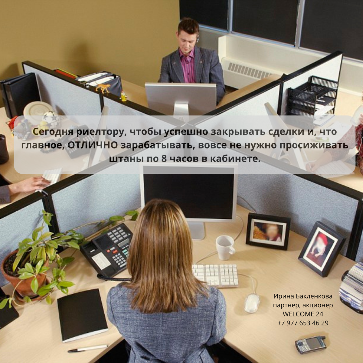 Всем привет! На связи Ирина Бакленкова, акционер и партнер WELCOME 24. Давайте поговорим об одной из самых забавных (и устаревших) догм в нашей профессии. Риелтор обязан сидеть в офисе? Мои хорошие, кажется, кто-то забыл перевернуть календарь! 😉 Помните те славные времена, еще несколько лет назад, когда риелтор без офиса - это как врач без фонендоскопа? Дежурства, привязка к столу, график, "от звонка до звонка"... Прямо-таки офисное "пятиборье", с обязательным отсиживанием часов. Но рынок, он же не стоит на месте, да? И давно уже вывел формулу, что главное - это не "лицо кирпичом" в офисе, а результат. Сегодня риелтору, чтобы успешно закрывать сделки и, что главное, ОТЛИЧНО зарабатывать, вовсе не нужно просиживать штаны по 8 часов в кабинете. А цифры, как известно, не врут: до 60–70% всех рабочих задач мы с вами выполняем "в полях", то есть вне четырех стен офиса! • Это и показы, от которых иногда кружится голова (в хорошем смысле!), • и встречи с клиентами (в уютном кафе, на объекте