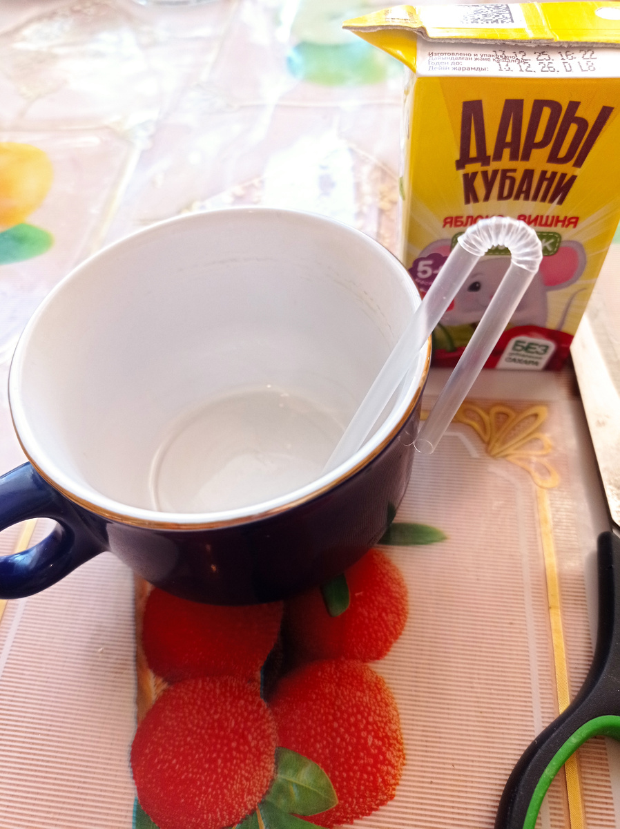(Сок, juice (джус))" Где-то 2 недели назад была в магазине и ни с того ни с сего пить захотела. Как раз проходила мимо маленьких пакетиков с соком, для детей. Никогда на них не обращала внимания. Ну взяла пакетик, покрутила в руках, почитала и прочитала, что без сахара. Да еще дешевый -17 руб. Ну думаю, че ж не взять. Купила. Из магазина вышла и, отойдя в сторонку, утолила жажду. Понравилось. Обратно назад и купила 5 штук на неделю. Правда сок только яблочный в этих детских пакетах. Встречается еще яблоко-вишня. Теперь пью сок каждый день. Надрезаю уголок пакета и выливаю сок в чашку, выпивая через трубочку. Еще пью компот из сухофруктов, тоже каждый день. Начала его доливать в чашку с соком, запивая сухофрукты. Сока в пакете всего 125 гр. -это половина чашки. Эксперты пишут, что надо соединять сок с водой 1:1. Я же решила соединять с к