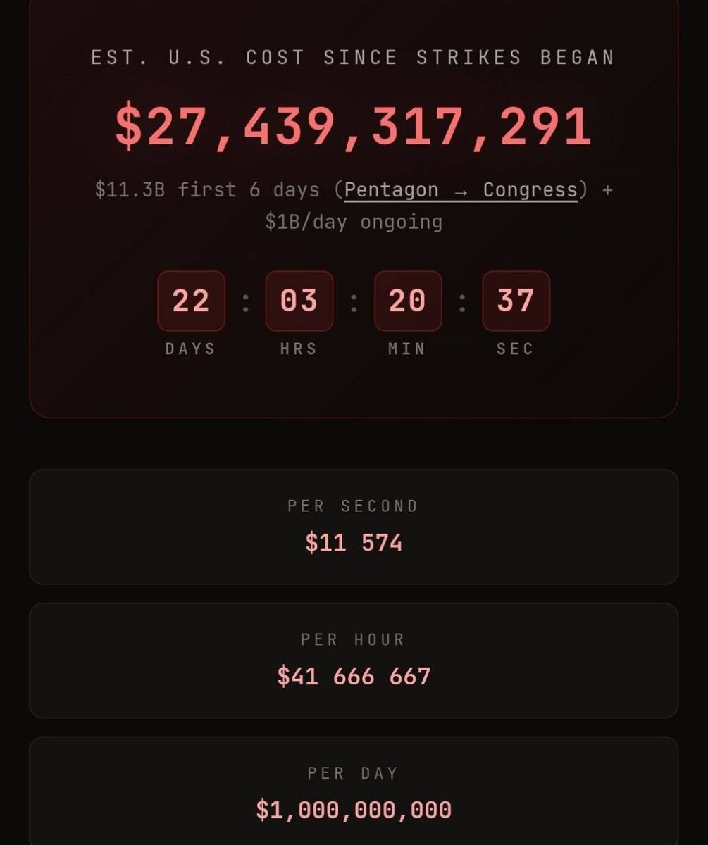 Расчет основан на данных Пентагона: первые шесть дней конфликта обошлись в 11,3 млрд, а каждый следующий день — около 1 млрд. Однако в оценку могут не входить часть сопутствующих расходов, включая развертывание сил и замену техники, поэтому фактическая сумма может быть выше. 💬 The United States has already spent more than $27 billion on a military operation against Iran - Iran War Cost Tracker The calculation is based on data from the Pentagon: the first six days of the conflict cost 11.3 billion, and every next day — about 1 billion. However, the estimate may not include some of the associated costs, including the deployment of forces and the replacement of equipment, so the actual amount may be higher.