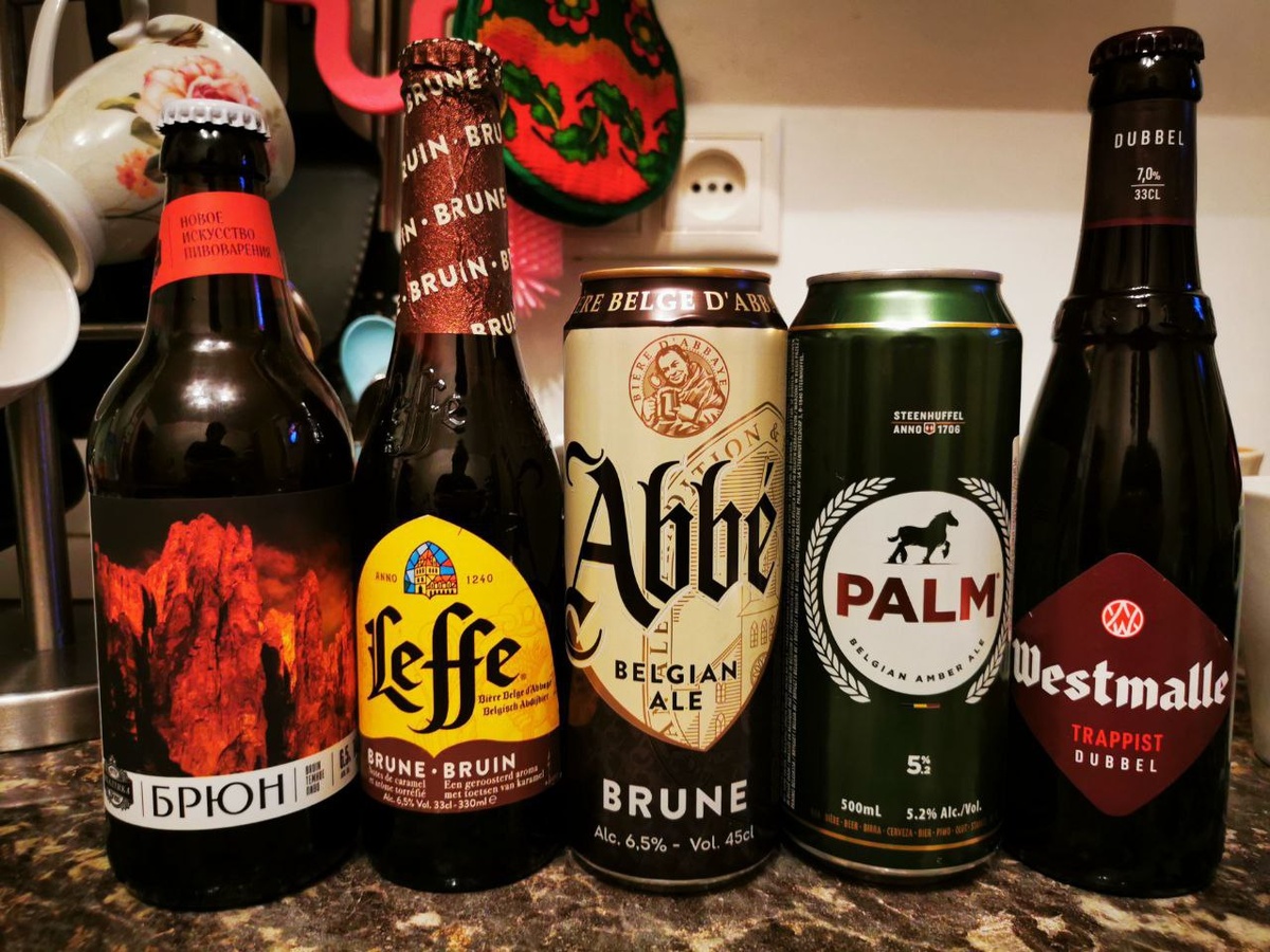 На этой неделе пивной ветерок вновь задул Батю в Бельгию, для того чтобы изучить вопросик темного эля или "Аббатского пива" - Brune. Это семейство тёмных бельгийских элей, обычно аббатских или монастырских, основанных на богатом карамельном солоде. Его особенность в интересном жженом солодовом вкусе и почти полном отсутствии хмельной горечи. Этот обзор стал одним из самых высоко оцененных за последнее время. Все конкурсанты показали достойный уровень. Дегустировать такие пивандрии было в полнейший кайф. А теперь глянем на этих красавцев: 🍺ABBE Brune 🍺LEFFE Brune 🍺Балтика Брюн 🍺PALM 🍺WESTMALLE TrapDubbel Наверное самое разочаровывающее пиво за весь обзор это - WESTMALLE TrapDubbel. Оно довольно сильно газированное и кислое. Сразу, с первых глотков, оно как-то не зашло. При цене в 350 р. за бутыль это просто неприемлемо. Никаких особенностей у этого пивчанского, после 4 конкурсантов, замечено не было. Кроме того факта, что это самое обычное пиво по самой дорогой таксе. Далее идут оч