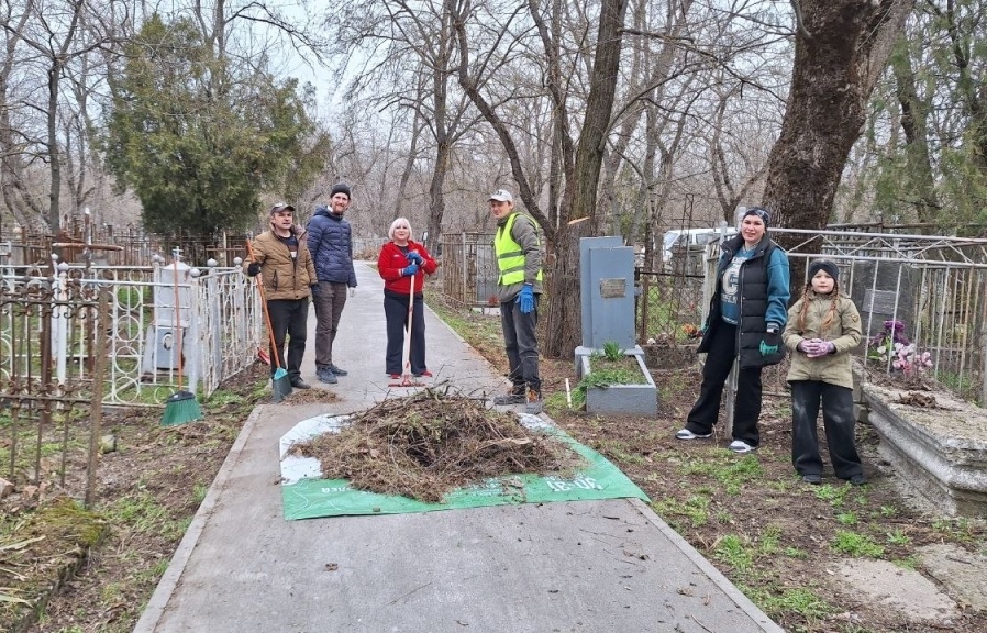 На Старом кладбище Таганрога прошел первый весенний субботник, посвященный благоустройству аллеи, где расположено семейное захоронение геральдиста Александра Лакиера и прилегающей территории. Инициатива объединила представителей общественности, волонтеров и школьников для наведения порядка после прошедшей зимы. В работах приняли участие председатель регионального Союза геральдистов России по Ростовской области Олег Тесля, волонтерский отряд учащихся школы № 10 и их родителей во главе с советником директора по воспитательной работе Натальей Ивановной Глазковой, а также другие горожане. После завершения уборки всех участников угостили пирожками и чаем, приготовленным на церковной дровяной печи. Организаторы сообщили, что собранный в ходе субботника мусор будет вывезен в рамках плановых работ по содержанию кладбища. Также планируется завершить покраску двери склепа Лакиера как только установится подходящая для этого погода. Ранее мы рассказали, что масштабный субботник в таганрогской роще