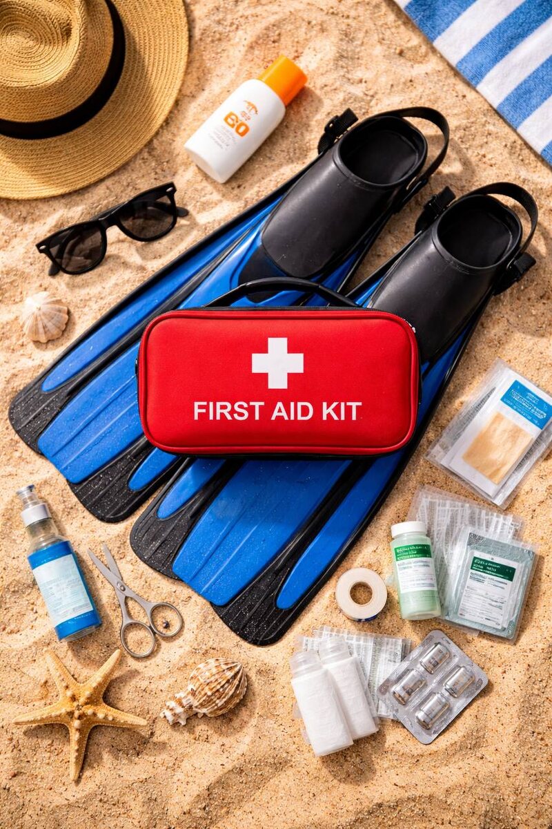 Снаряжение проверено, условия идеальные — самое время отправиться навстречу подводным приключениям! Фридайвинг — это заряд энергии и яркие впечатления, а грамотная подготовка поможет сделать каждое погружение максимально комфортным и безопасным. Соберите компактную аптечку первой помощи: она станет надёжным подспорьем, если вдруг случится небольшая неприятность — царапина от коралла или дискомфорт в ушах из‑за перепада давления. Так вы сохраните спокойствие и сможете без лишних забот наслаждаться красотой морских глубин. - антисептики: хлоргексидин, мирамистин, перекись водорода (3 %), фурацилин. Пригодятся для обработки мелких ссадин и порезов.