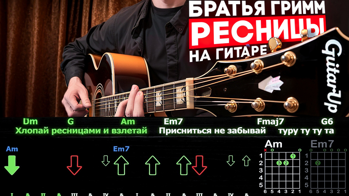 Всем привет! С вами Руслан, автор канала GuitarUp. Сегодня максимально быстро и понятно разбираем один из самых трогательных и лиричных хитов группы Братья Гримм – «Ресницы»! В этом видео я сыграю песню целиком на акустической гитаре, а на экране — интерактивная графика в реальном времени: схемы аккордов и стрелки направления боя! Никакой воды — только самое нужное, чтобы ты заиграл эту душевную песню уже сегодня. 🎸🖤