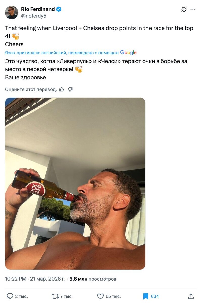 Рио Фердинанд с пефком радуется осечкам "Ливерпуля" и "Челси" 🍺