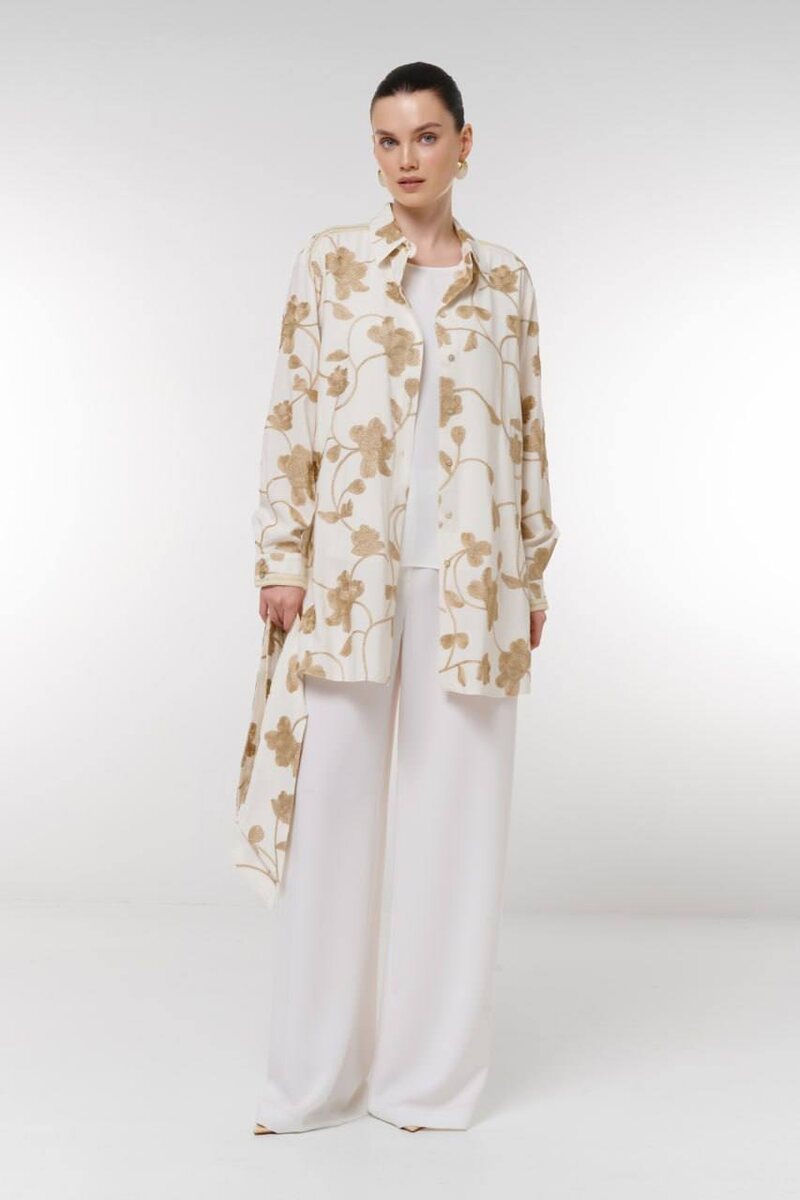 ! Золотистое шитье на удлиненной рубашке придаёт ей максимально парадное настроение,а лёгкие струящиеся брюки и топ с лаконичной золотистой отделкой составляет с ней идеальный ансамбль. На летнюю вечеринку, в кафе с подругами или в красивую поездку — носите эту роскошную тройку в своем ритме! Под заказ действует приятная скидка 📲💬 #женскаяодежда #новинки #новаяколлекция #Caterinaleman
