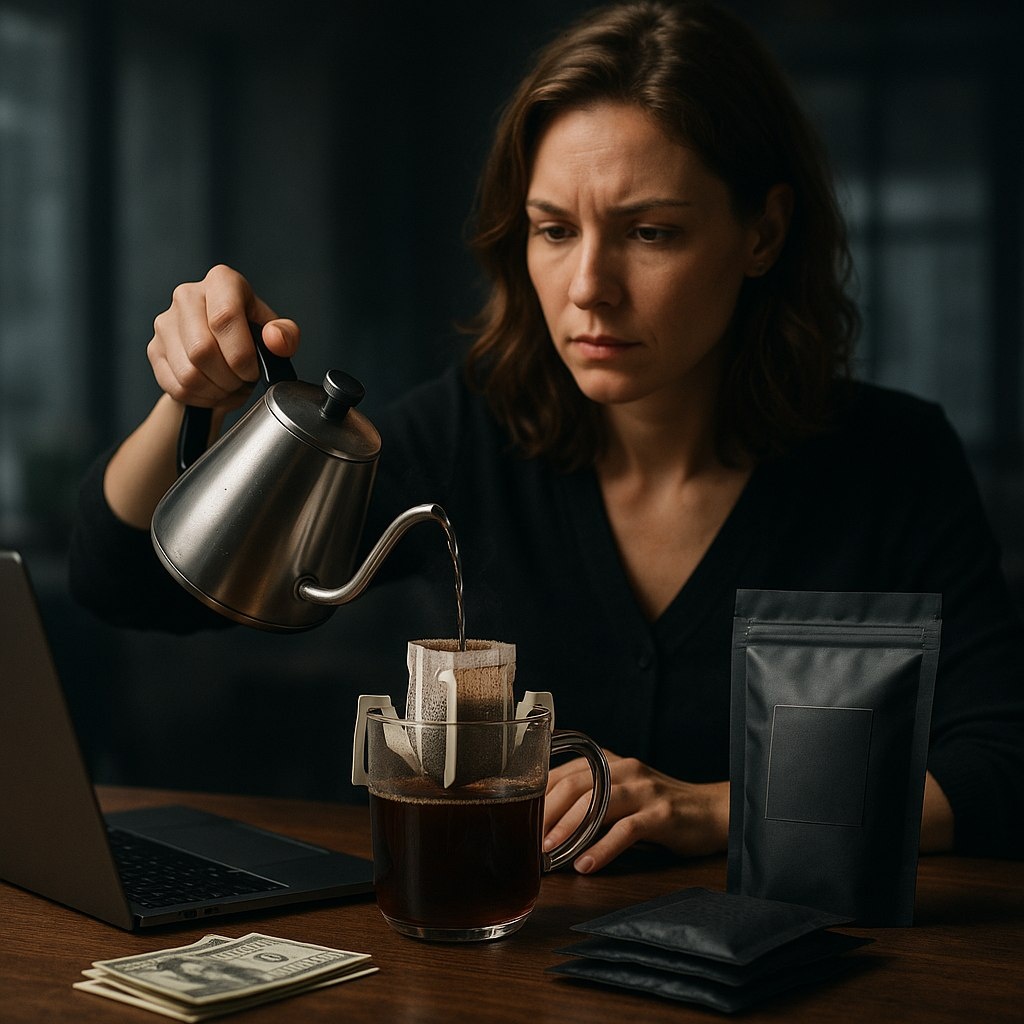 ? Собери премиальные дрип-пакеты и продавай их через соцсети! ✅ Просто: качественный кофе, стильная упаковка, удобство. ✔️ Цена набора — 990 ₽, себестоимость — 439 ₽. 300 продаж в месяц = 297 000 ₽ выручки! Но есть подводные камни: 1️⃣ Экономить на кофе нельзя. 2️⃣ Упаковка должна выглядеть дорого. 3️⃣ Нужна правильная маркировка. Полный разбор — в тг! Ты бы рискнул запустить такой бизнес?