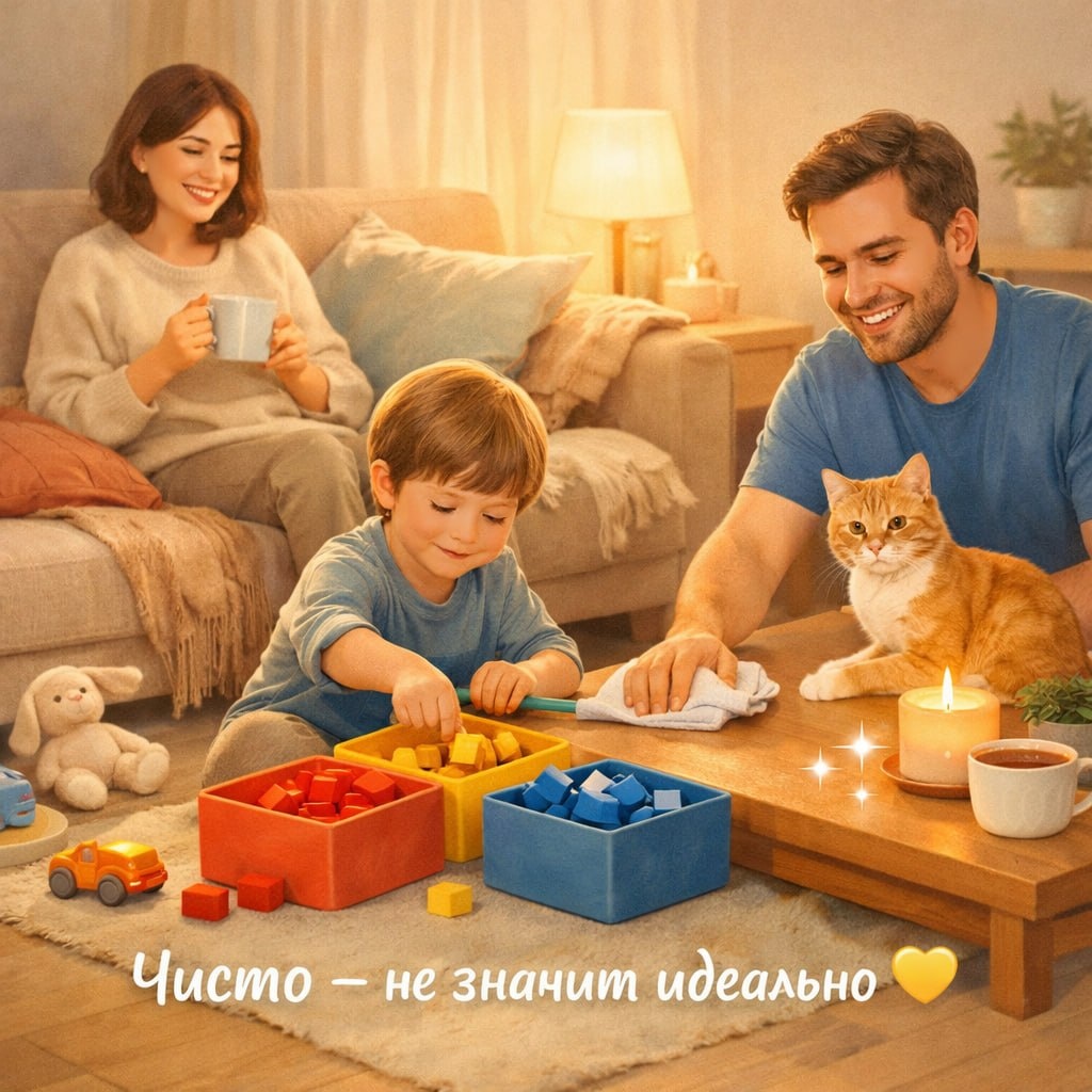 😄🏡 Делимся 3 краткими советами от Easy Clean, как не сойти с ума и даже получить удовольствие ✨ 1️⃣ Хаос — это норма. Если есть дети или животные, идеальный порядок днём — миф. Выдохните 😌 2️⃣ Игра вместо приказа. «Кто быстрее соберёт все красные детали?» работает лучше, чем «убери игрушки». Даже муж подключается 😏👌 3️⃣ Делегируйте с юмором. «Ты у нас главный по гладким поверхностям» — и стол блестит, и никто не обижен 😄✨ 4️⃣ Вечер — ваш. Когда всё утихло, не бросайтесь мыть плиту. Чай, свечи, тишина. Порядок подождёт 🕯🍵 Хорошего воскресенья без марафона уборки ❤️ А какой у вас лайфхак для спокойных выходных? Делитесь 👇