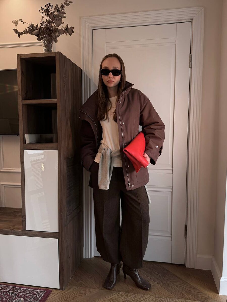 Весенние выходные — это прогулки, встречи с друзьями, время для себя. Для таких дней нужен образ, который подходит с утра до вечера. Днём: лонгслив, брюки из тонкой шерсти, куртка на кулиске в шоколадном оттенке. Комфортный, продуманный, готовый к переменчивой погоде. Вечером может похолодать — возьмите с собой свитер с косами. Снимете куртку, наденете свитер — и образ готов для вечерней прогулки или ужина в любимом месте. Один образ на весь день. 🤎