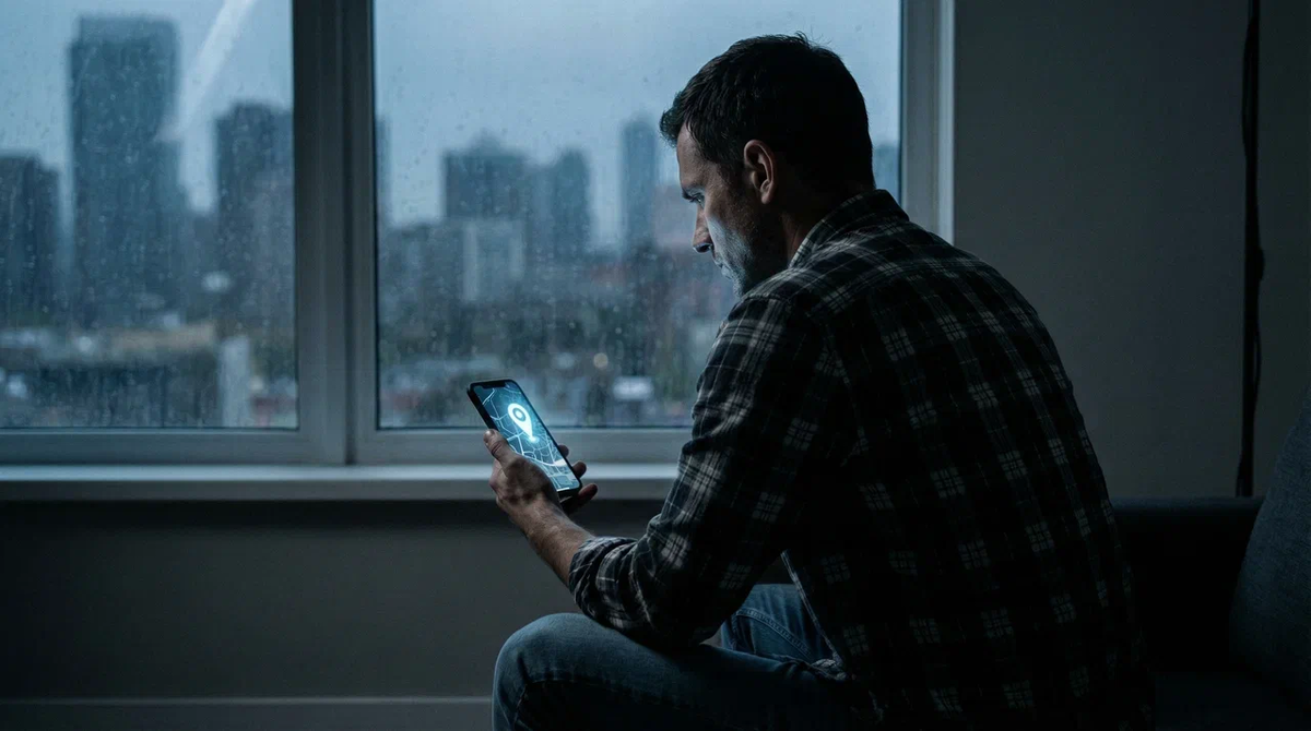 Он прошёл на кухню, налил воды. Выпил залпом. Посмотрел на телефон — приложение всё ещё показывало точку на карте.