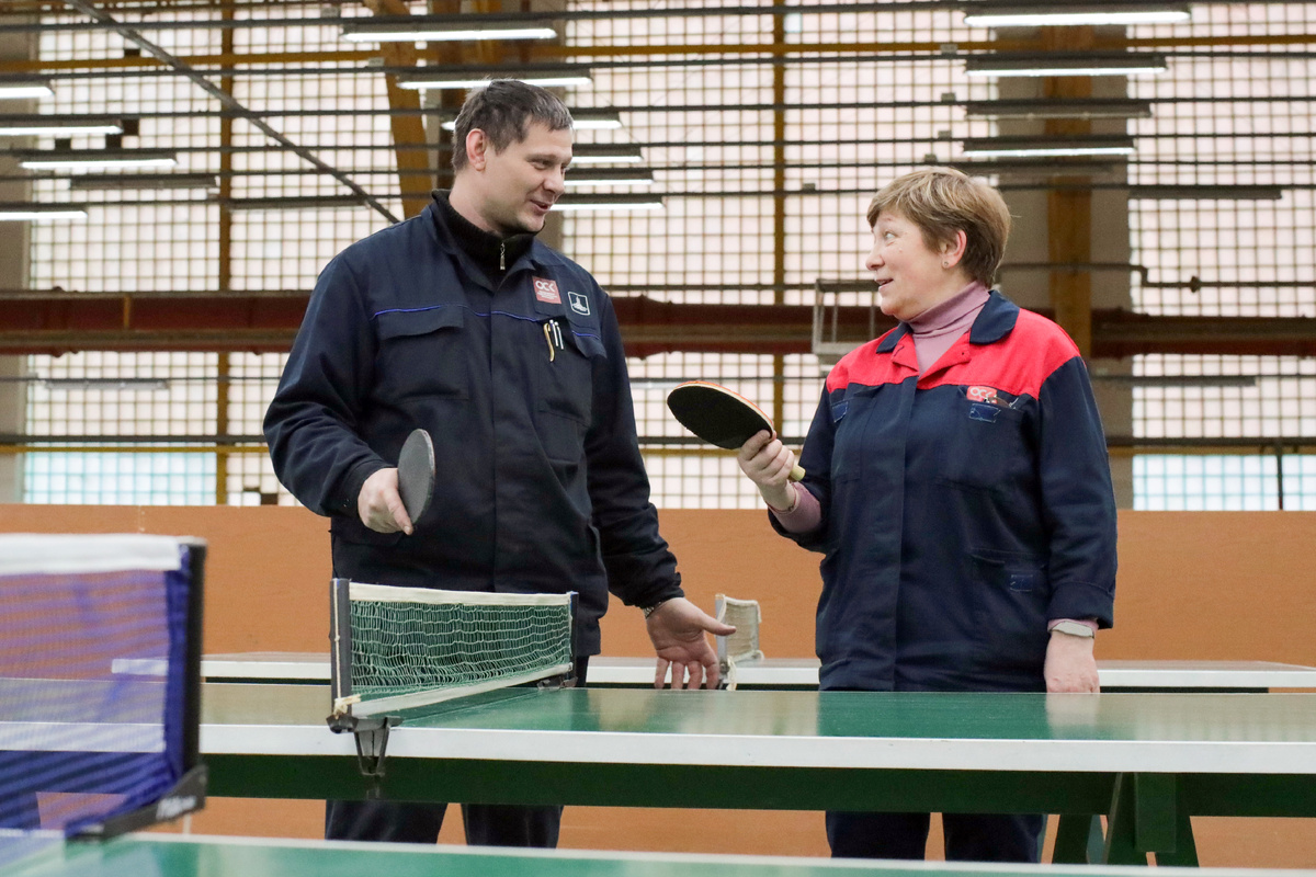 Так и вышло. Каждый обеденный перерыв Сергей и Татьяна тренировались в цехе. К слову, здесь стремятся создавать для своих работников возможности для занятий физкультурой и спортом в нерабочее время. Есть у цеха своя волейбольная площадка, есть и отличные теннисные столы.