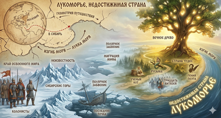 Лукоморье - это, пожалуй, главная жертва пушкинского гения. Александр Сергеевич настолько мощно впечатал этот образ в наше сознание своим вступлением к «Руслану и Людмиле», что мы напрочь забыли о реальных корнях этого слова. Для нас Лукоморье - это синоним абсолютной сказочности, герметичный мир с учеными котами, русалками и тридцатью витязями, который существует только в пространстве поэзии. Но если мы сорвем этот блестящий слой сусального золота, то обнаружим под ним суровый, продуваемый ветрами географический термин, который веками наводил ужас на наших предков. В основе слова лежит чистая геометрия и праславянские корни: «лук» (изгиб, дуга, то же самое, что и в оружии луке) и «море». Лукоморье - это буквально «изгиб моря», морской залив или коса. В древнерусском языке это слово не несло никакой магии, оно было сугубо навигационным ориентиром. И что самое интересное: это место всегда ассоциировалось с опасностью, дикостью и абсолютной чужбиной. Если мы заглянем в старинные западное