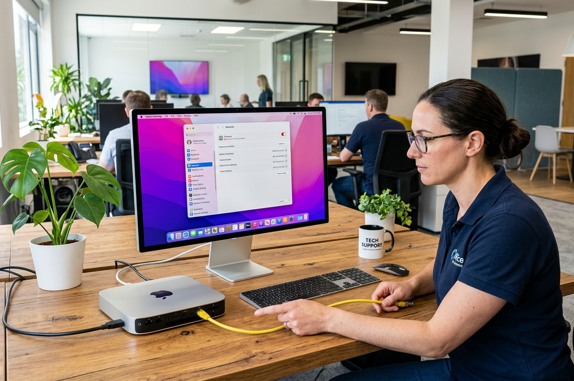Поэтому когда Mac mini не видит Ethernet, проблема может быть как на поверхности, так и глубоко внутри платы. Если Mac mini 2018 не определяет Ethernet, но порт физически цел, стоит проверить настройки сети, сбросить конфигурацию, обновить macOS. Иногда достаточно сброса SMC и NVRAM, чтобы система «вспомнила» о существовании сетевого интерфейса. Есть характерный признак: в системной информации Ethernet отсутствует или отображается некорректно, но после перезагрузки может появляться на короткое время. Это вежливый намёк на программный сбой или конфликт драйверов. Но если техника молчит уверенно и последовательно, инженер начинает смотреть в сторону аппаратной части.