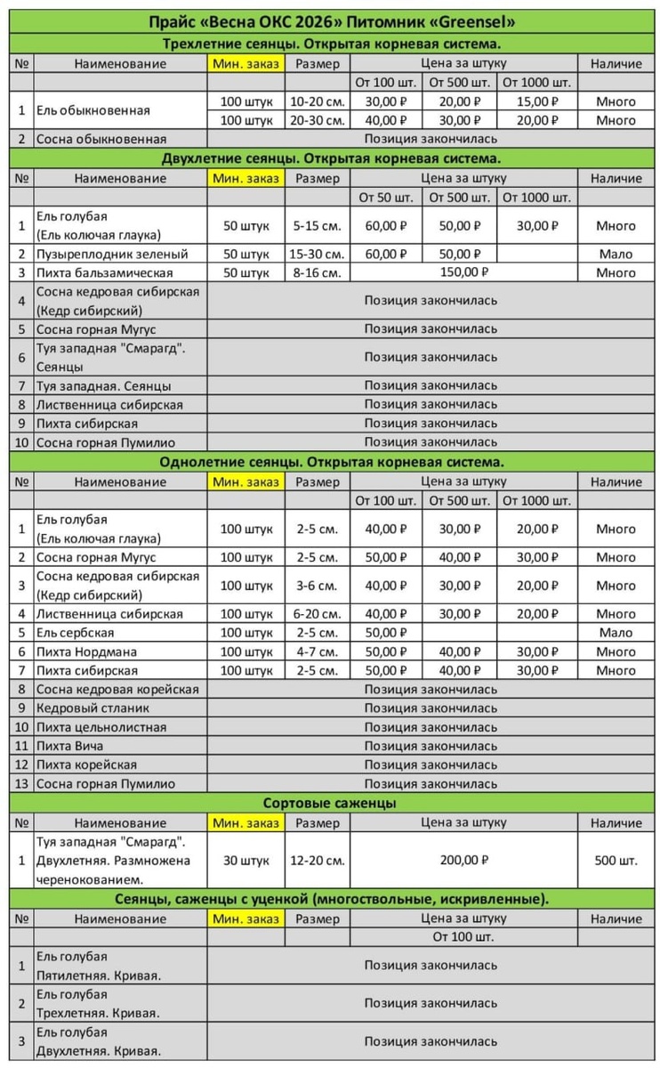Зима потихоньку отступает, начинаем освобождать саженцы в р9 По снегу рассыпаем торф, для более быстрого таяния ✅ ПРОДОЛЖАЕМ ПРИЕМ ПРЕДЗАКАЗОВ НА СЕЯНЕЦ С ОТКРЫТОЙ КОРНЕВОЙ - ОКС ❌ ВРЕМЕННО ПРИОСТАНОВИЛИ ПРИЕМ ПРЕДЗАКАЗОВ НА САЖЕНЦЫ В р9 и кассетная - ЗКС (закрытая корневая) 💬Возобновим прием заказов на ЗКС, примерно с середины апреля, как будет отправлена большая часть заказов ОКС 🌲🌲🌲🌲🌲🌲🌲🌲 ПО ОФОРМЛЕНИЮ ЗАКАЗА —- ВОПРОСЫ писать в Телеграм @LessRaido или МАХ 89053935050 Наталья