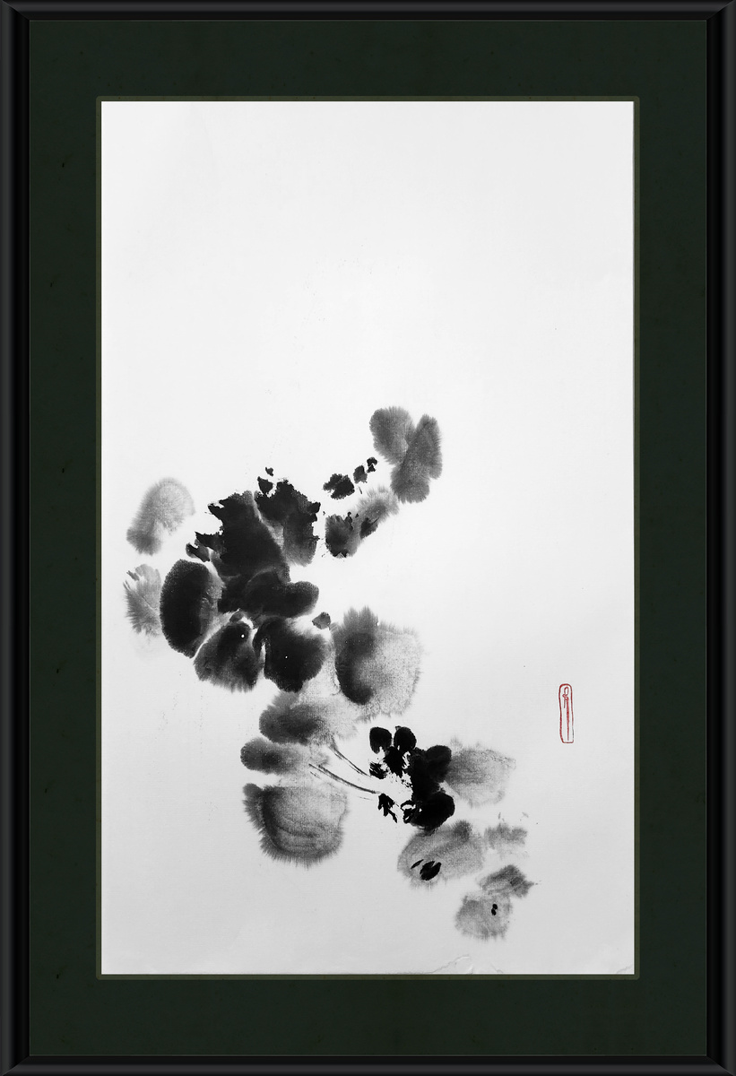 Помогло отбросить заученные наработки и попробовать что-то кардинально поменять. Я посмотрела на фото гортензии и увидела светлый кусок. И тут меня осенило (да неужели!): в туши передний план всегда решается затемнением. Чёрный - значит впереди. А что, если взять, и сделать наоборот: передний план контрастом - невесомым, с плотным центром. А задний план - массивным, глухим? Довольно нестандартное решение.