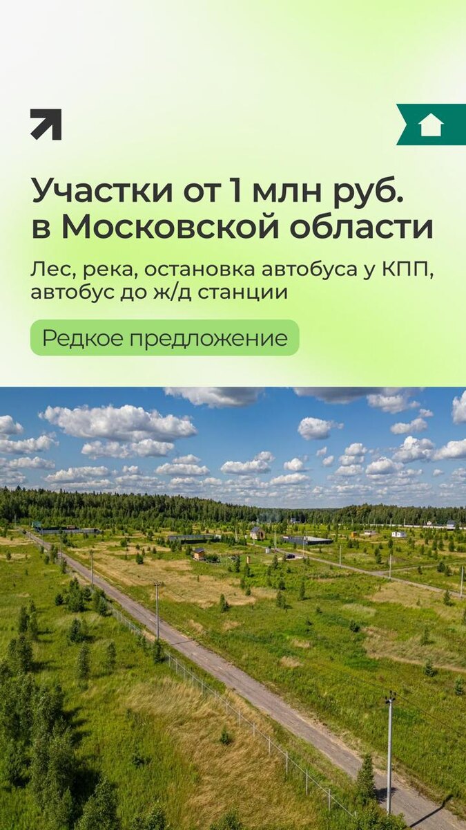 в МО в посёлке Починки🔥 Лес, река, остановка автобуса у КПП, автобус до ж/д станции и стоимость участков от 1 млн рублей — редкое сочетание параметров для проектов в Московской области на текущий момент Площадь участков: от 6 до 40 соток Возможна постоянная регистрация Инфраструктура и условия: • Центральное электроснабжение 15 кВт на участок • Подъезд по асфальтированной дороге • Закрытая территория • Охрана и КПП • детская площадка • прогулочные зоны и зоны отдыха Расположение: • Рядом река Лопасня — можно купаться и рыбачить • В нескольких километрах река Ока — популярное место для отдыха на воде • 80 км от МКАД • Выезд по трассе М-4 «Дон» или Симферопольскому шоссе • Время в пути около 1 часа 15 минут • Рядом расположен Приокско-Террасный заповедник Стоимость участков — от 1 млн рублей ▶️ Доступна рассрочка #удача #участок