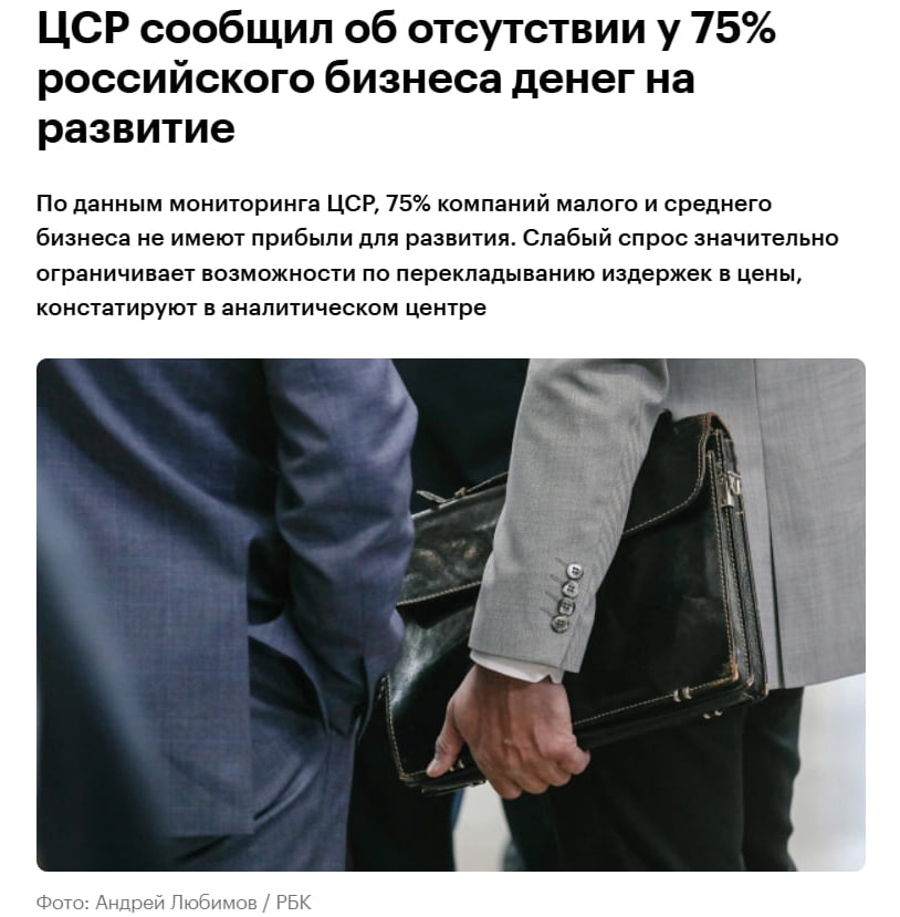 Об этом нам сообщает мартовский мониторинг Центра стратегических разработок, опубликованный в РБК. Вдумайтесь в динамику: в феврале таких было 57%, а за месяц стало 75%. В принципе, логично: все подали декларации, посчитали, сколько нужно уплатить обновленного НДС и прослезились. Интересно, что по данным исследования, только 8% компаний готовы вкладывать прибыль в расширение (в феврале таких было 29%). Остальные либо кладут деньги на депозит, чтобы хоть как-то их сохранить, либо им просто нечего класть. Главные проблемы? Низкий спрос (42%), дорогие кредиты (33%), рост издержек (14%). Половина бизнесов перекладывает издержки в цену, а вторая половина не может этого сделать, потому что клиенты уйдут. Что это означает для экономики? Только одно: нам всем придется перестраиваться. Доля малого бизнеса в ВВП составляет более 21%. По итогам третьего квартала 2025 года количество работников у субъектов МСП составило 19,92 млн человек — это наивысшее значение за период 2019–2024 годов. Это озна