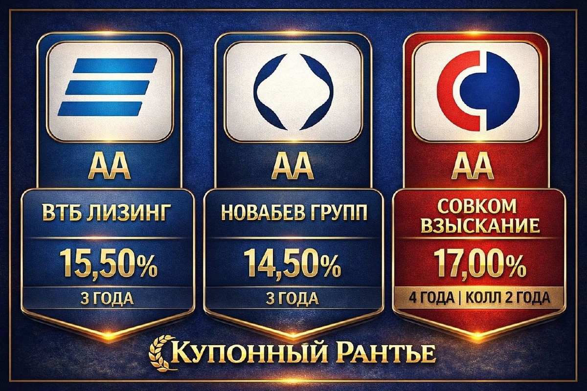 : ➡️ ВТБЛиз-001Р-МБ-05 👉 Обзор на финансовое состояние эмитента выложен тут ISIN RU000A10EML2 ➡️ НоваБев-003Р-03 👉 Обзор на финансовое состояние эмитента выложен тут ISIN RU000A10EMG2 ➡️ СФОСовком-01 ISIN RU000A10EMM0
