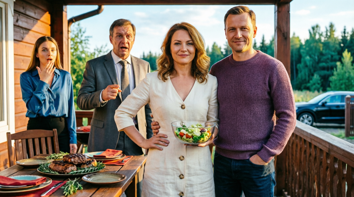 Павел легко взбежал на ступени, взял из рук Галины тяжелую салатницу и поставил на стол. Потом обнял её за талию — уверенно, по-хозяйски.