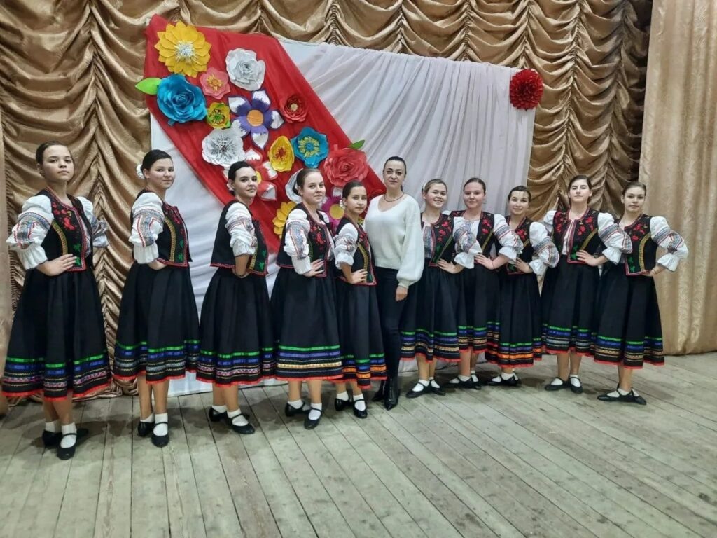 За постановкой пристально наблюдает Ирина Смыкова. Вот уже 13 лет она руководит местным Домом культуры. По образованию Ирина хореограф и во времена своего студенчества изучала танцы разных народов, поэтому знает точно: у каждой национальности есть свой «алфавит» движений.