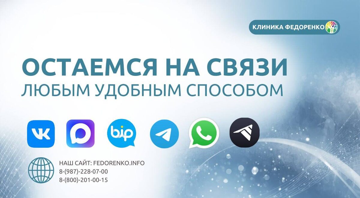 ! Π§ΡΠΎΠ±Ρ ΠΎΡΡΠ°Π²Π°ΡΡΡΡ Π½Π° ΡΠ²ΡΠ·ΠΈ, ΠΌΡ ΠΈΡΠΏΠΎΠ»ΡΠ·ΡΠ΅ΠΌ Π²ΡΠ΅ Π΄ΠΎΡΡΡΠΏΠ½ΡΠ΅ ΠΊΠ°Π½Π°Π»Ρ ΠΊΠΎΠΌΠΌΡΠ½ΠΈΠΊΠ°ΡΠΈΠΈ. ΠΠΎΠ½ΡΠ°ΠΊΡΡ Π΄Π»Ρ ΡΠ²ΡΠ·ΠΈ Ρ Π°Π΄ΠΌΠΈΠ½ΠΈΡΡΡΠ°ΡΠΈΠ΅ΠΉ ΠΊΠ»ΠΈΠ½ΠΈΠΊΠΈ: π ΠΠ΄ΠΌΠΈΠ½ΠΈΡΡΡΠ°ΡΠΎΡ (ΠΎΡΠΈΡΠΈΠ°Π»ΡΠ½ΡΠΉ Π½ΠΎΠΌΠ΅Ρ, ΡΠ°ΠΊΠΆΠ΅ Π΄ΠΎΡΡΡΠΏΠ΅Π½ Π² MAX, BIP, Telega ΠΈ WhatsApp): +7 987 228-07-00 π ΠΡΠΈΡΠΈΠ°Π»ΡΠ½ΡΠΉ ΡΠ°ΠΉΡ ΠΊΠ»ΠΈΠ½ΠΈΠΊΠΈ: https://fedorenko.info/ π± Telegram-ΠΊΠ°Π½Π°Π»: https://dzen.ru/id/6385f6f0f9a4263978c02d02 π²Telegram (Π°Π΄ΠΌΠΈΠ½ΠΈΡΡΡΠ°ΡΠΎΡ): @fedorenkoinfo_administrator π² MAX (ΠΊΠ°Π½Π°Π»): https://max.ru/join/9Kn2oLQcyn-P_qxWtb67GL2Z9ev68t5Gxpib9dGorIA π Π‘ΠΎΠΎΠ±ΡΠ΅ΡΡΠ²ΠΎ ΠΠΠΎΠ½ΡΠ°ΠΊΡΠ΅: https://vk.ru/fedorenkoinfo ΠΡΡΠ°Π΅ΠΌΡΡ Π½Π° ΡΠ²ΡΠ·ΠΈ! Π‘ ΡΠ²Π°ΠΆΠ΅Π½ΠΈΠ΅ΠΌ, Π°Π΄ΠΌΠΈΠ½ΠΈΡΡΡΠ°ΡΠΈΡ ΠΠ»ΠΈΠ½ΠΈΠΊΠΈ ΠΊΠΎΠ³Π½ΠΈΡΠΈΠ²Π½ΠΎΠΉ ΠΏΡΠΈΡ