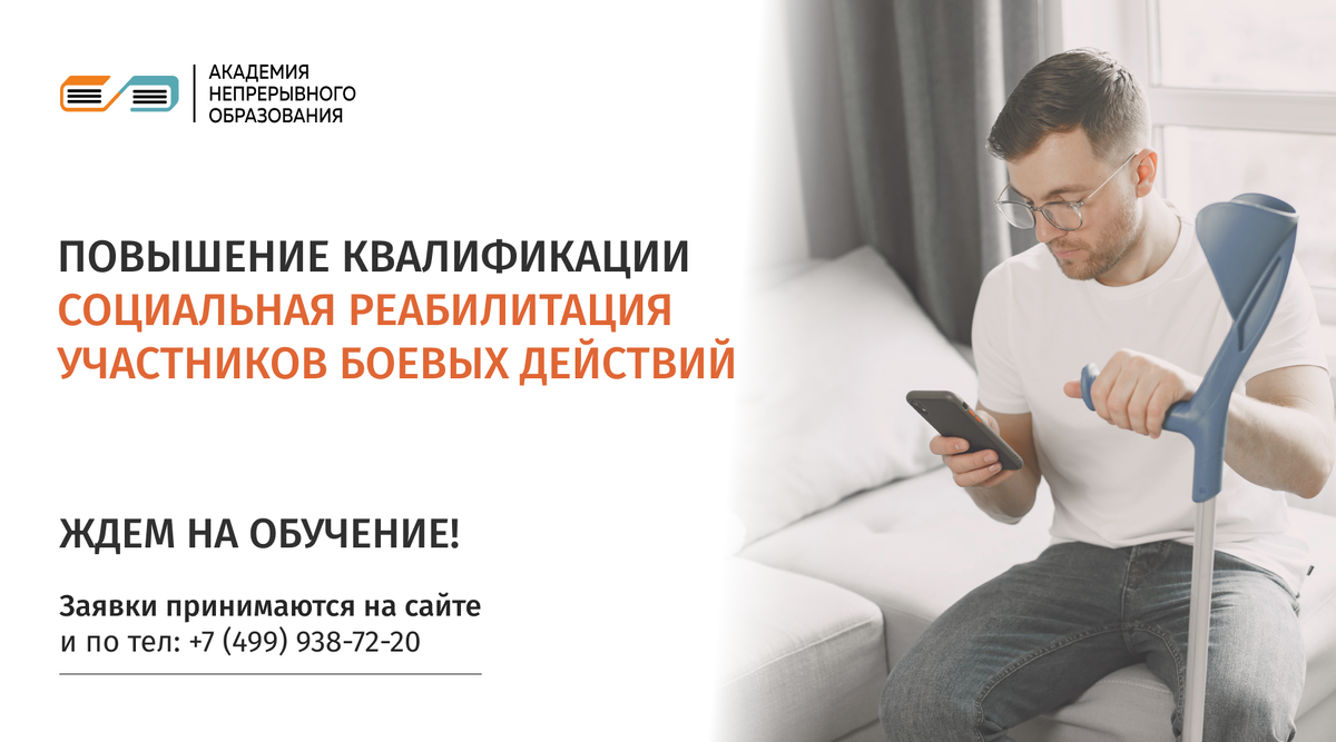 Приглашаем специалистов по реабилитации и социальной защите пройти дистанционное повышение квалификации! Социальная реабилитация и абилитация инвалидов, получивших травму, ранение, контузию, увечье в связи с боевыми действиями: https://clck.ru/3SfmSa Программа курса охватывает работу с военнослужащими и членами их семей, а также разные виды реабилитации и абилитации: Обучение полностью дистанционное. Платформа доступна 24/7. После курса выдается удостоверение о повышении квалификации. Документ вносится в ФИС ФРДО. Остались вопросы? Оставьте заявку на консультацию на странице курса: https://clck.ru/3SfmSa