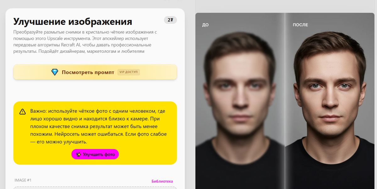 Ребята, по многочисленным просьбам подключила нейросеть, которая улучшает фото 🙌 Теперь можно легко сделать исходное фото более чётким, светлым и аккуратным — чтобы нейрофото получались ещё красивее и максимально похожими на вас 💫 Я уже попробовала — реально работает 👍 Особенно выручает, если фото: — снято издалека — с тенями на лице — не очень чёткое Просто загружаете фото → нейросеть его улучшает → и уже на основе этого делаете нейрофотосессию 📸 Получается намного лучше и естественнее 👌 Обязательно попробуйте здесь, это реально упрощает процесс и даёт более крутой результат 💛