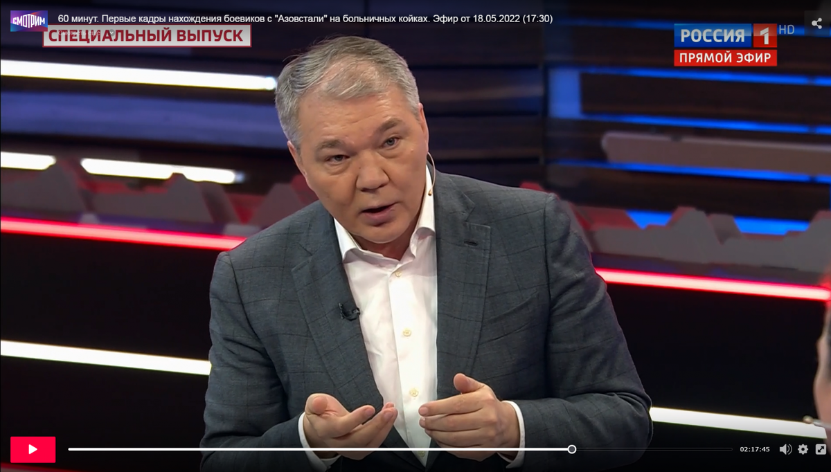 Калашников в передаче "60 минут": "Мы должны думать о себе"; "Нет ни одного хорошего фильма, снятого Кончаловским"