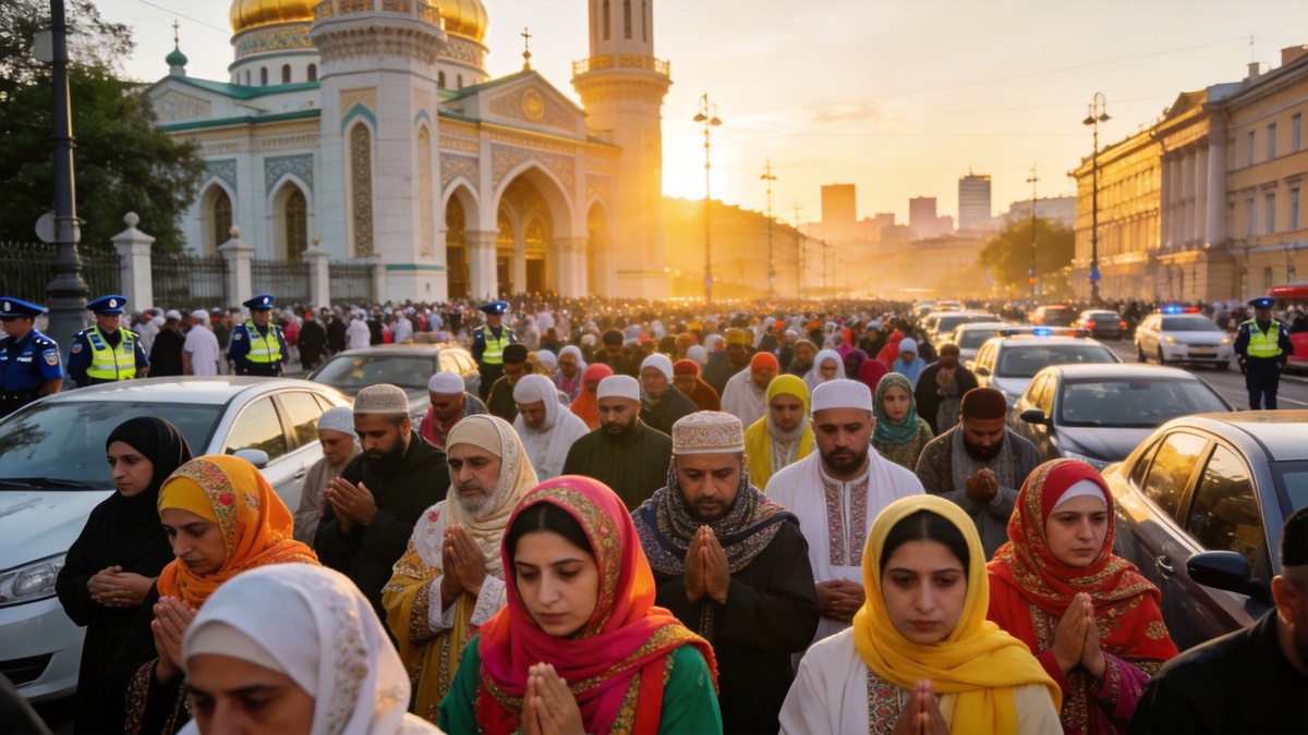 Ураза-байрам в Петербурге: тысячи верующих собрались у Соборной мечети В Петербурге с раннего утра отмечают Ураза-байрам. Тысячи мусульман собрались на молитву. Введены ограничения движения и изменены маршруты транспорта Фотография: Peterburg2.ru С самого утра 20 марта в Петербурге и других городах мира мусульмане отмечают Ураза-байрам. В этом году праздник собрал у Соборной мечети на Петроградской стороне и в начале Московского проспекта тысячи верующих. Уже с вечера 18 марта улицы вокруг мечети начали заполняться автомобилями, что создало сложности для местных жителей - по данным Петербург2, на Малой Посадской улице машины стояли плотно, и выехать из дворов было практически невозможно. В связи с массовым скоплением людей и транспорта городские власти ввели временные ограничения движения. Особенно заметны они в районе Соборной мечети и на Московском проспекте. Изменения коснулись и маршрутов общественного транспорта - автобусы и троллейбусы следуют в объезд, чтобы избежать заторов и о