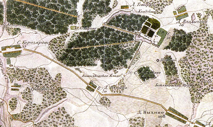📷 Фото 1: Старая карта Москвы с селом Перово (XVIII–XIX век).