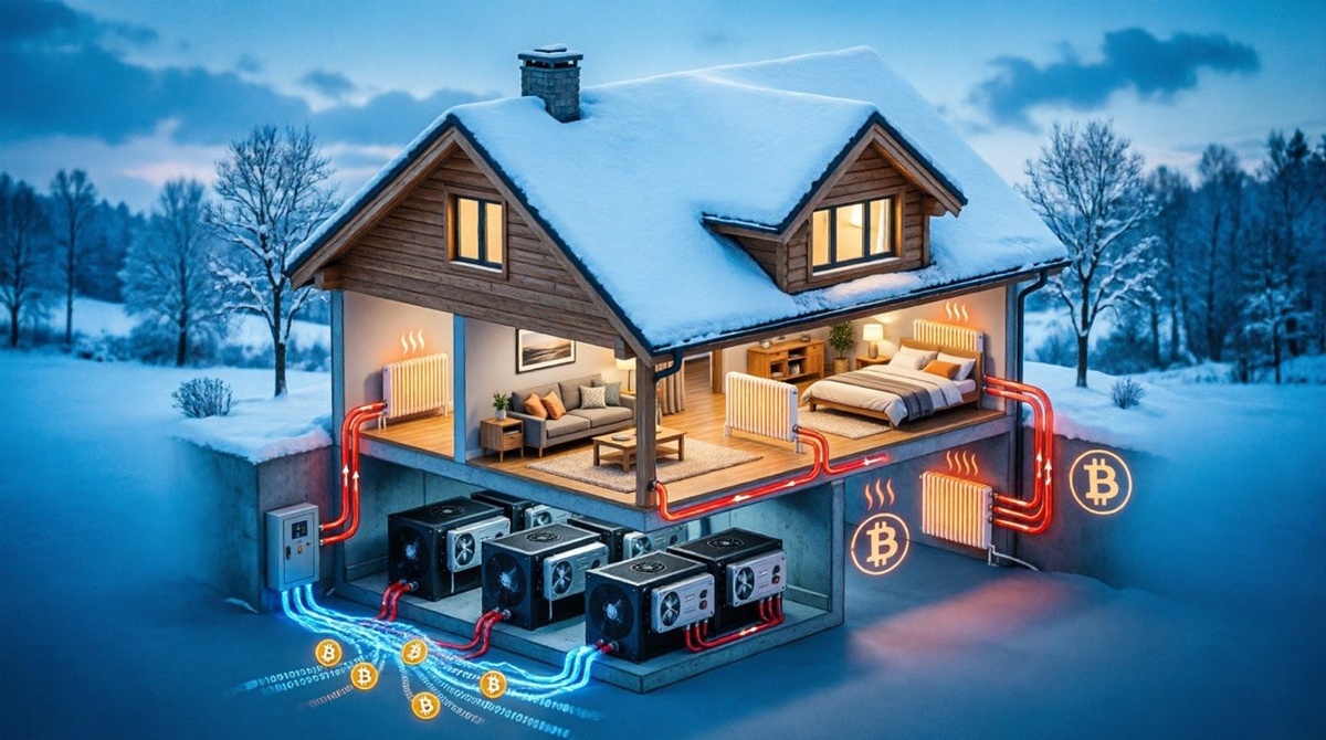 Сегодня загородный дом можно отапливать не только обычным электрокотлом, но и так называемым "криптокотлом" — системой на базе ASIC-майнера с водяным охлаждением. Идея простая: устройство потребляет электричество, выделяет тепло и одновременно добывает биткоин. То есть вы не просто платите за отопление, а еще и получаете доход от майнинга. По сути, криптокотел — это *майнер на водяном охлаждении*, встроенный в систему отопления дома. Если обычный ASIC греет воздух и шумит вентиляторами, то в криптокотле тепло снимается через жидкость и передается в: - радиаторы, - теплые полы, - бойлер, - буферную емкость, - систему ГВС. Получается, что оборудование работает как электрический котел, но с дополнительной функцией — *добычей биткоина*. Как это работает Схема выглядит так: 1. ASIC-майнер потребляет ЭЭ для выполнения вычисления тем самым получает вознаграждение в виде биткоина. 2. В процессе работы он выделяет большое количество тепла. 3. Вода или теплоноситель забирает это тепло через водо