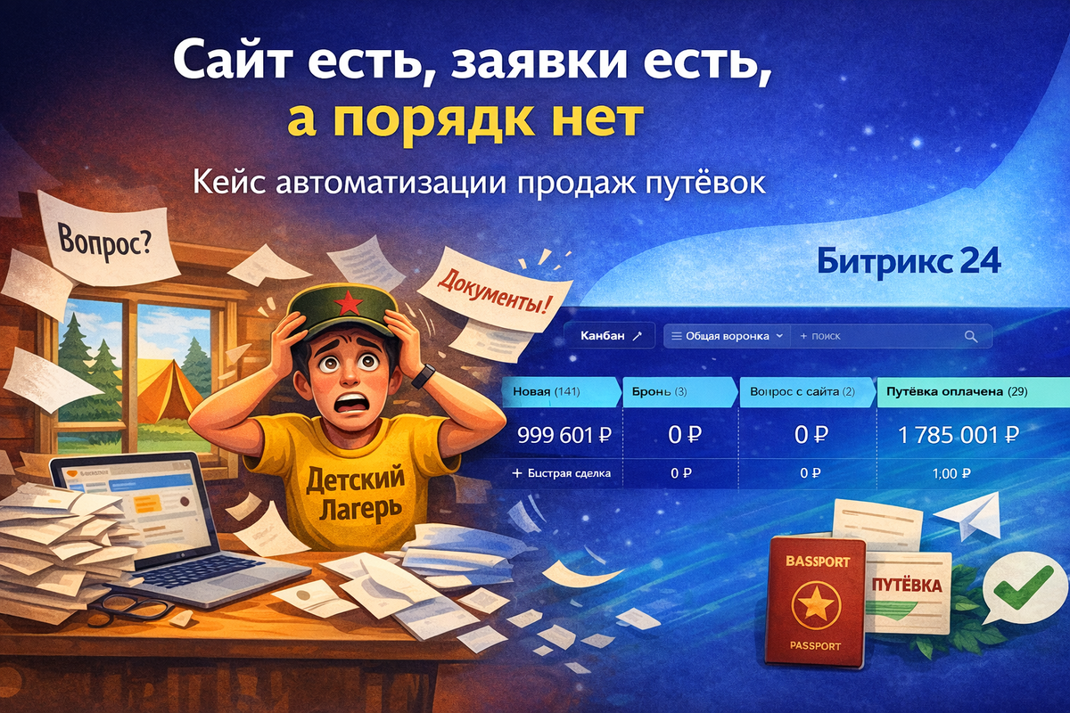 Сайт есть, заявки есть, а порядка нет: как мы автоматизировали продажи путёвок для детского лагеря через Битрикс24
