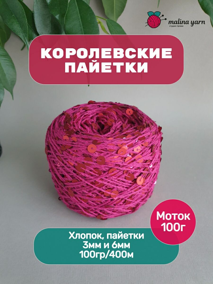 Королевские пайетки хлопок, пайетки 3 и 6мм 100г/400м Купить на сайте: https://malina-yarn.ru/986-pryaja/598-bobinnaya-pryaja/655-payetki/1161-korolevskie-payetki Купить на WB: https://www.wildberries.ru/catalog/884523391/detail.aspx