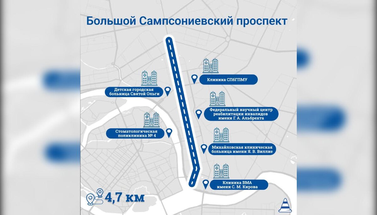 В 2026 году в Выборгском районе Санкт-Петербурга стартует масштабное обновление дорожного полотна на участке, имеющем стратегическое значение для социальной инфраструктуры города. Работы проведут в рамках реализации национального проекта «Инфраструктура для жизни». Специалисты дорожного хозяйства приведут в нормативное состояние отрезок магистрали от Пироговской набережной до Новосильцевского переулка. Общая протяженность ремонтируемого участка превысит 4,5 километра. Подрядчикам предстоит обновить асфальтобетонное покрытие проезжей части, а также выполнить локальный ремонт тротуаров, чтобы обеспечить комфортное и безопасное передвижение пешеходов. Проспект является ключевой транспортной артерией, обеспечивающей подъезд к целому ряду крупных медицинских и социальных учреждений, куда ежедневно обращаются тысячи петербуржцев. В зоне влияния ремонта находятся Клиника Военно-медицинской академии имени С. М. Кирова, Михайловская клиническая больница имени Я. В. Виллие, а также Федеральный н