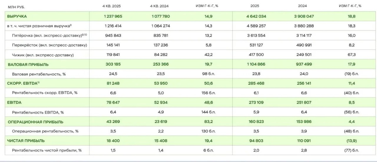 X5 обнародовал отчётность за 2025 год: выручка выросла на 18,8%, а чистая прибыль упала на 13,9