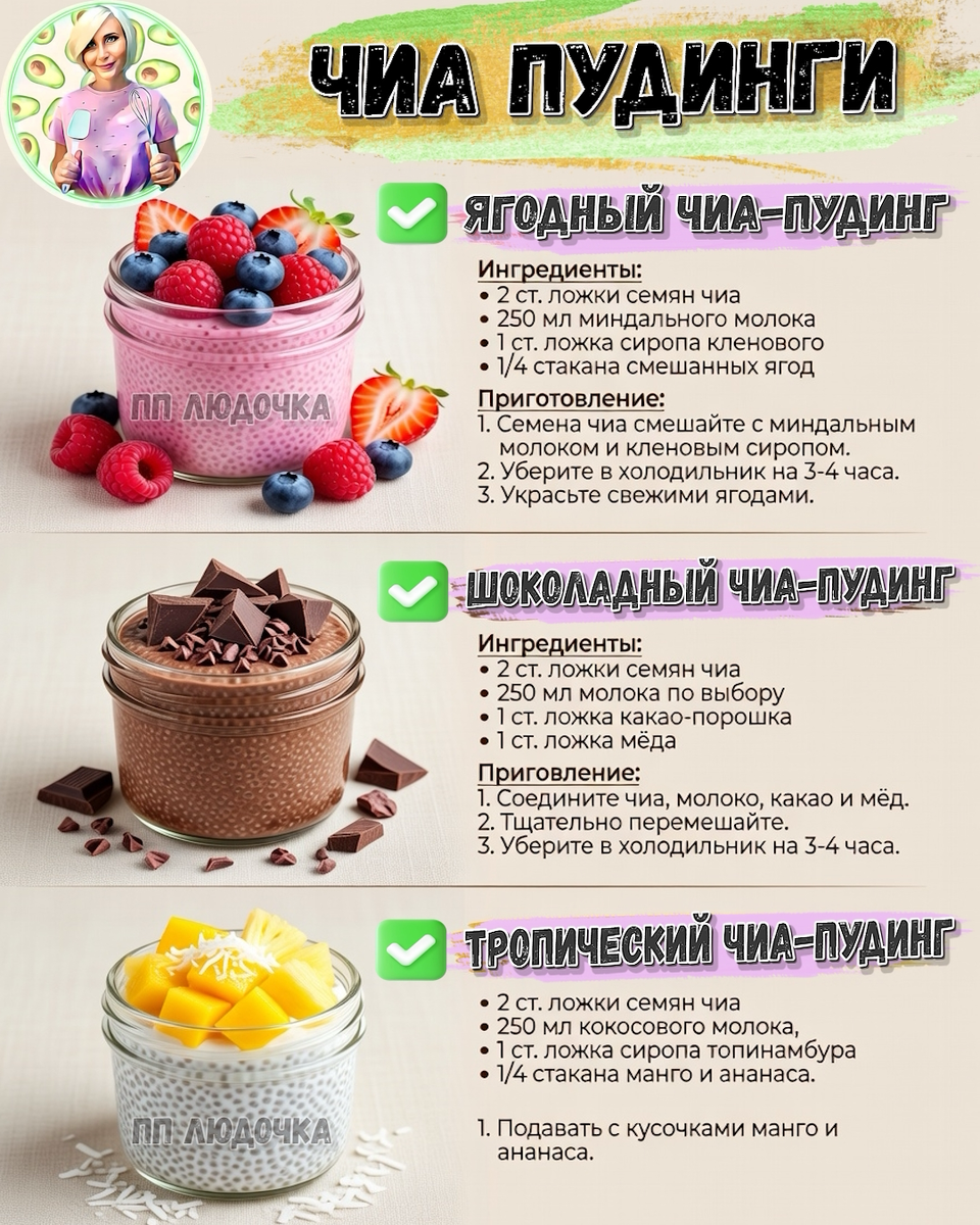 Чиа-пудинг — это идеальный завтрак или перекус: клетчатка, Омега-3 и масса энергии. Ловите 5 моих любимых рецептов, сохраняйте! 💚