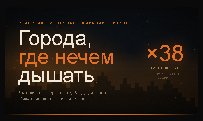 Я потратил несколько часов, изучая отчёты ВОЗ, IQAir и независимых экологов. И пришёл в ужас. Не от цифр — цифры абстрактны. А от историй конкретных городов, в которых живут реальные люди и просто... дышат. Дышат тем, от чего умирают.