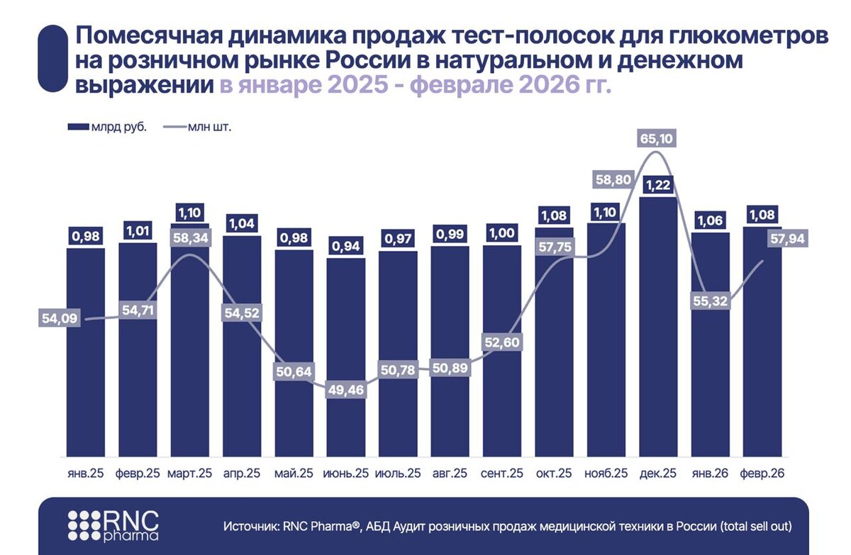 превысила 21% рынка По данным RNC Pharma в 2025 г.: 📈 12,4 млрд руб. достиг российский розничный рынок тест-полосок для глюкометров, включая онлайн и FMCG канал (+11% к ’24) 📈 657,7 млн шт. тест-полосок было реализовано (+0,3% к ’24) 📊 21% всех натуральных продаж тест-полосок приходится на онлайн канал 📈 4,4 млрд руб. составил объём продаж глюкометров (+24% к ’24) 📈 2 млн шт. устройств реализовано в рознице (+25% к ’24) 📊 наиболее активный прирост (+59% в упак.) зафиксирован в сегменте систем непрерывного мониторинга глюкозы (СНМГ) Бренды лидеры рынка тест-полосок ⭐️ #Аккучек (#Roche): доля 34,1% в руб. ⭐️ #Уантач (#ДжонсониДжонсон): 22,4% в руб. ⭐️ #Контур (#Асцензия): 17,5% в руб. #Тестполоски #глюкометры #RNCPharma Источник: @RNCPharma Делитесь с коллегами и подписывайтесь Telegram | Max | Дзен | VK