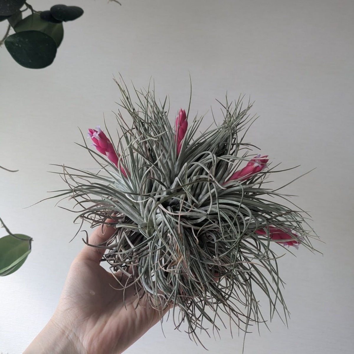 даже просто на камнях, впитывая влагу непосредственно из воздуха. ✨ Минимум хлопот: Им не нужен горшок и грунт! Их можно поставить в любую стеклянную вазу, подвесить на проволоку или просто положить на полку. Главное условие — доступ воздуха со всех сторон. 💧 Как поливать? Спорный, но важный момент. Тиландсии получают влагу через чешуйки на листьях. Раз в неделю (или чаще, если дома жарко) их нужно полностью погружать в теплую воду на 20–30 минут. После купания не размещайте под поток холодного воздуха - загниет! ☀️ Где разместить: Они любят яркий рассеянный свет и свежий воздух. Идеально — возле окна, но не под палящими лучами. 🌸 Цветение: Перед цветением тилландсия часто меняет цвет — выпускает яркие прицветники (розовые, красные, фиолетовые). Это зрелище стоит того, чтобы за ней поухаживать!