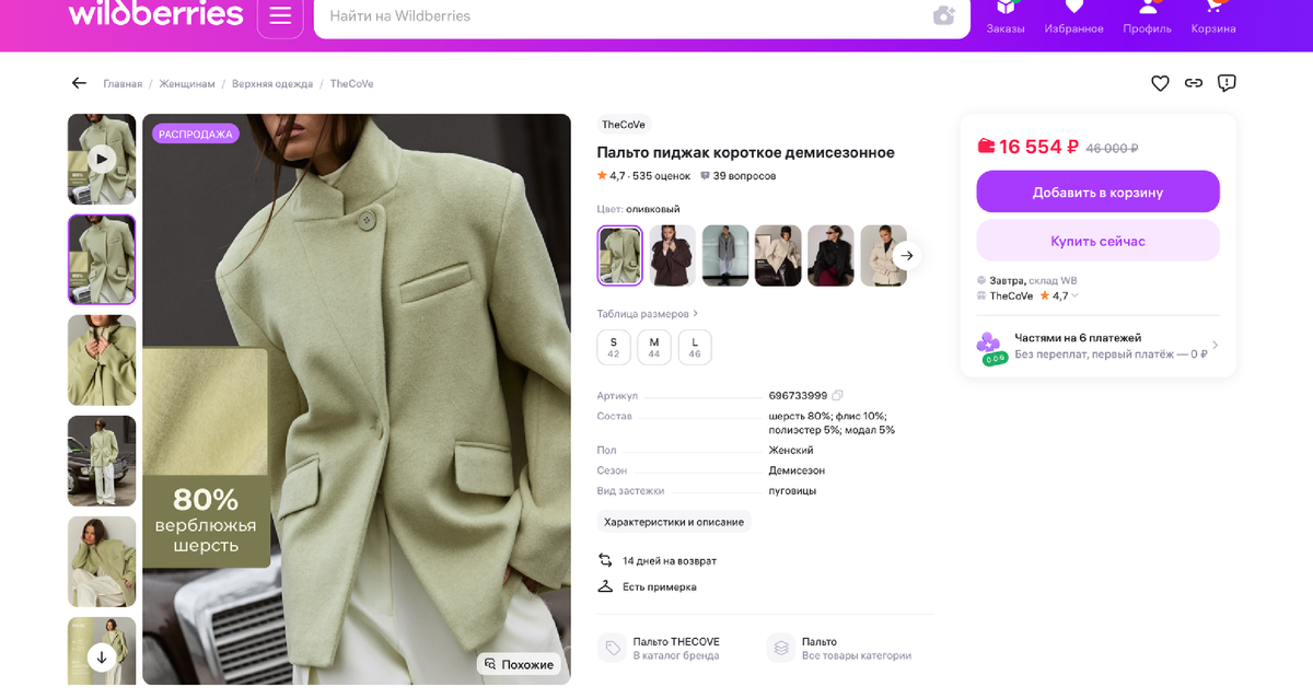 Вердикт: Идеальный вариант для городских модниц, которые не хотят выбирать между температурой и стилем. Берите, пока есть размер S в оливе!