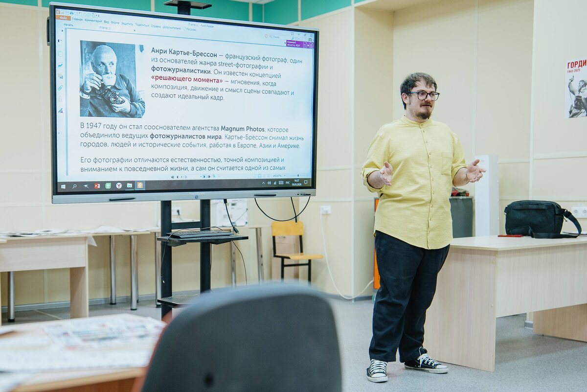 !📸 В XIX веке 2-го тысячелетия француз Жозеф Ньепс получил «Вид из окна в Ле Гра» — первый в истории снимок. Ученый нанес на медную пластину битум и поместил в камеру-обскуру. Краска под воздействием света полимеризовалась. Незастывший битум с темных участков он смыл смесью из нефти и масла. Таким образом на пластине появилось изображение. Технологии за 200 лет, конечно же, изменились, но суть осталась прежней: мы всё так же пытаемся «поймать» классный момент. О том, как это сделать, поговорили на очередном занятии медиашколы «Мой Борисоглебск». Спикером лекции выступил фотограф Сергей Троицкий. Познакомиться с работами творческого борисоглебца можно в сообществе «Тем временем в русской глубинке». Сергей поделился с участниками, как он сам пришел в фотографию, чьими работами вдохновлялся и у кого из великих стоит поучиться «насмотренности». На занятии разобрали, как чувствовать себя в репортаже «невидимкой» и ловить честные эмоции. Обсудили, где искать вдохновение в повседневности.