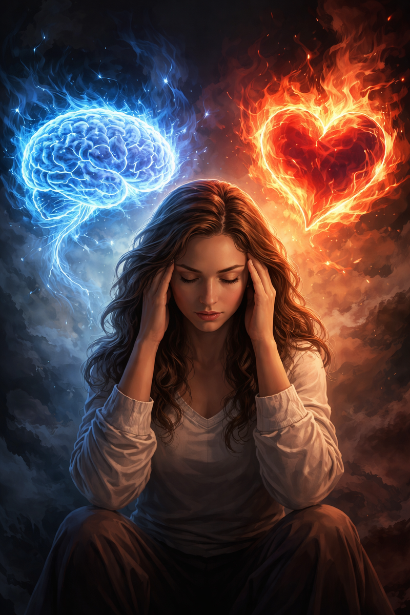 Иногда борьба между сердцем и разумом — это не просто выбор между «хочу» и «надо». Иногда это страх, переодетый в голос разума… и боль, переодетая в голос сердца.