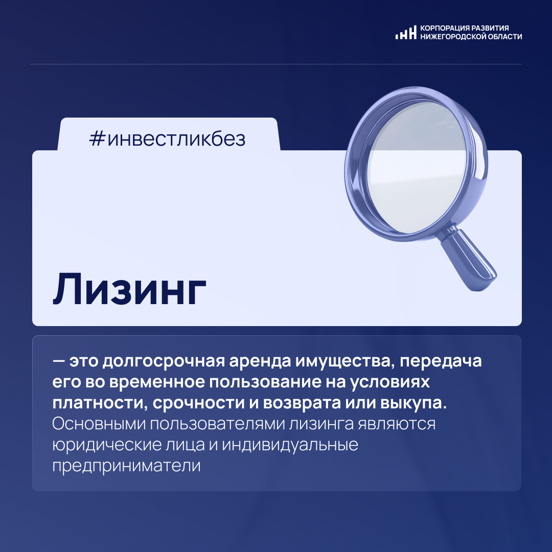 Сегодня в рамках рубрики #инвестликбез вспомним с вами о лизинге - важном инструменте при реализации инвестпроектов. Лизинг — это долгосрочная аренда имущества, передача его во временное пользование на условиях платности, срочности и возврата или выкупа. Основные пользователи лизинга — юридические лица и индивидуальные предприниматели. Получить имущество в лизинг часто проще, чем оформить бизнес-кредит. Лизинговые компании в основном фокусируются на бизнес-модели клиента и ликвидности самого актива, а не только на его кредитной истории. В условиях ужесточения денежно-кредитной политики и «кредитного голода» для малого и среднего бизнеса, лизинг является более доступным инструментом. В лизинг нельзя взять земельные участки, объекты природопользования, а также имущество, изъятое из свободного оборота или принадлежащее государству. Два основных вида лизинга: - Финансовый лизинг, который предполагает, что по окончании срока действия договора объект переходит в собственность лизингополучате