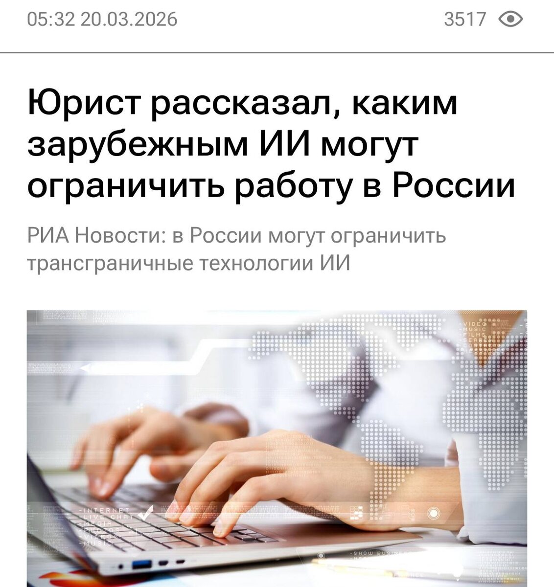 💻 Минцифры разрабатывает закон о блокировке зарубежных нейросетей — ChatGPT, Claude, Gemini и всех остальных. Официальная причина: иностранные ИИ передают данные россиян за границу. Компании обяжут переносить железо в Россию, иначе доступ закроют. Своих разработчиков, типа Яндекса, тоже не пощадят: за уязвимости в безопасности — штрафы. Не то чтобы нам сейчас легко доступ к ним получать... но будет еще труднее. Как вижу эту новость – нам нужны суверенные и независимые от зарубежных свои ИИшки. + Все наши запросы обучают зарубежные модели, понятно что основа для обучения берется и из поиска и из соцсетей, но дообучение и корректировка поведения/общения и прочие промпты уже доводят по данным получаемым с пользователей.. Опять же обучение ИИ - может быть настроено против нас - это не очень хорошо – создание бесконечного дезинформирующего контента, который похож на оригинальное видео и прочее - сильно ударит по вере людей в РЕАЛЬНОСТЬ С одной стороны пока наши ИИ не готовы конкурир