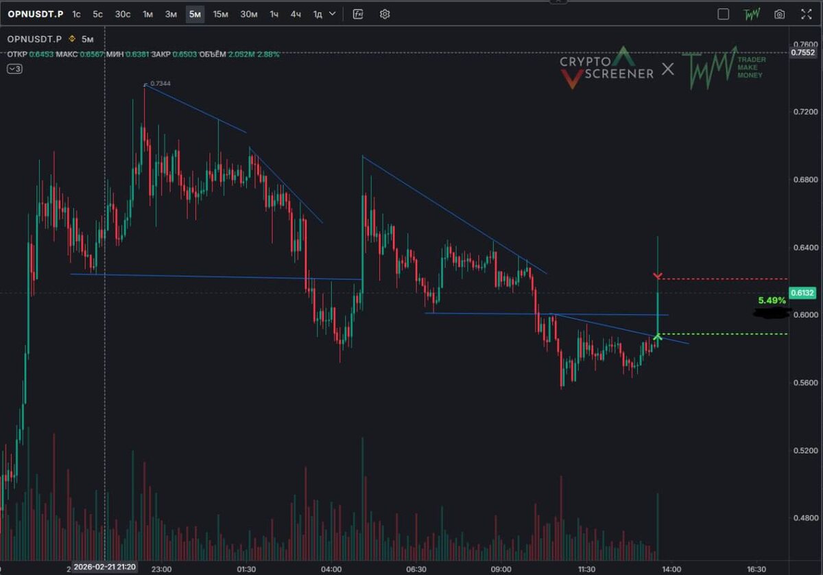 Монета находится в тренде, сильно выросла за сутки, создала уровень, откатила и сформировала проторговку. В ней копятся силы участников, после чего происходит пробой. Здесь и происходит слом.