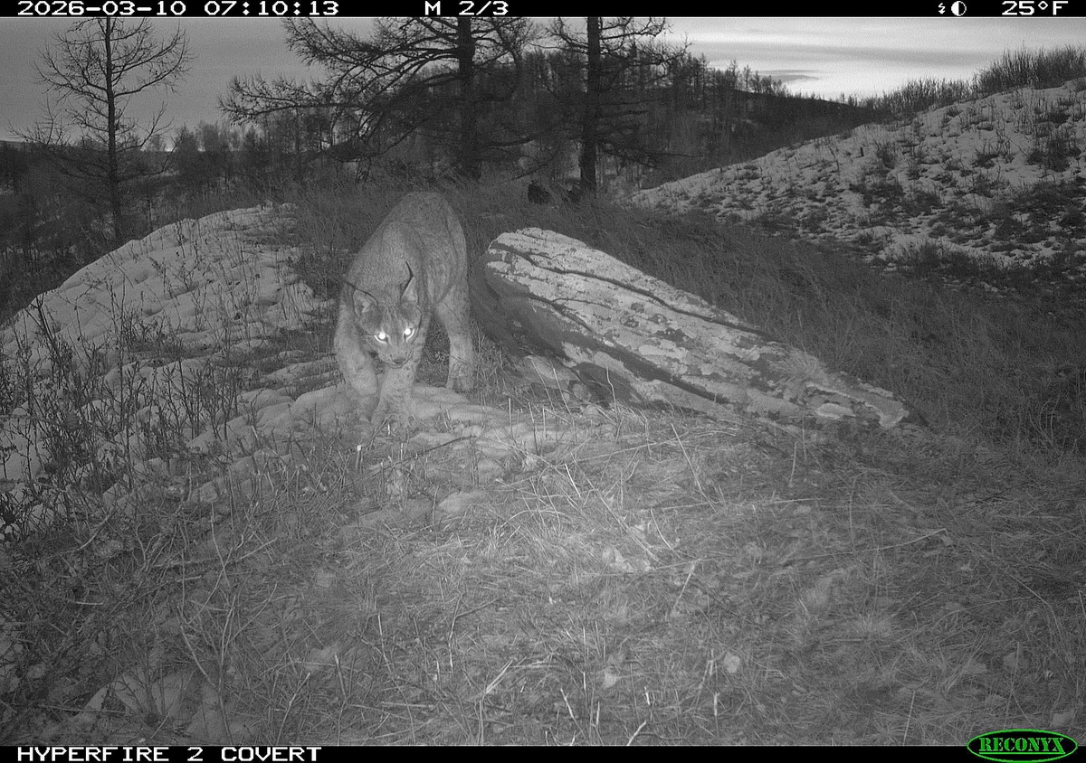 За рысью наблюдает госинспектор Владимир Пигин. Повадки и особенности хищника уже знает. Заповедный привет от Хана. Свежими кадрами с фотоловушки делится заповедник «Хакасский». Эта грациозная рысь предпочитает высокие холмы и скальные выходы, откуда открывается обзор на просторы. Хан любит посидеть на камне, наслаждаясь окружающими красотами.За Ханом наблюдает госинспектор Владимир Пигин и уже знает повадки и особенности этого хищника. Каждый раз ставя фотоловушку в новых местах, получаются хорошие кадры.Иногда в объектив в заповеднике попадает и другая рысь - особь прозвали Рваное ушко (из-за того, что на левом ушке есть такая характерная особенность). Фото / Заповедник «Хакасский»