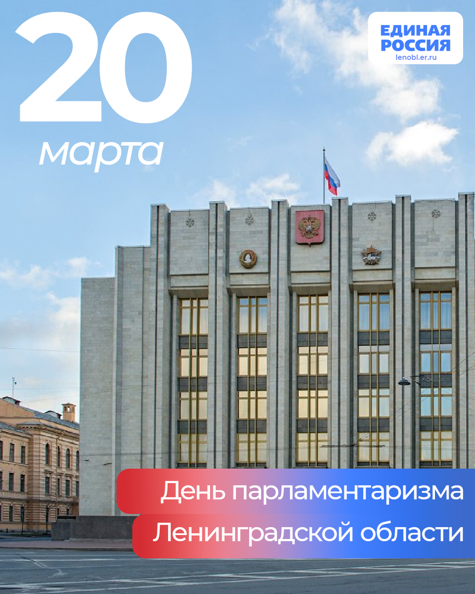 Уважаемые ленинградцы! Уважаемые депутаты! 20 марта мы отмечаем День парламентаризма Ленинградской области — День образования Законодательного собрания Ленинградской области. За эти годы принято множество законов, каждый из которых — результат кропотливого труда, дискуссий и поиска компромиссов. И главное, что в центре этого процесса всегда остается человек. Благодарю законодателей за принципиальность, профессионализм и готовность отстаивать интересы жителей. Впереди много задач. Уверен, наша совместная работа и дальше будет приносить реальную пользу каждому, кто живет и трудится на ленинградской земле. Желаю депутатскому корпусу энергии, настойчивости и новых свершений! Губернатор Ленинградской области Александр Дрозденко