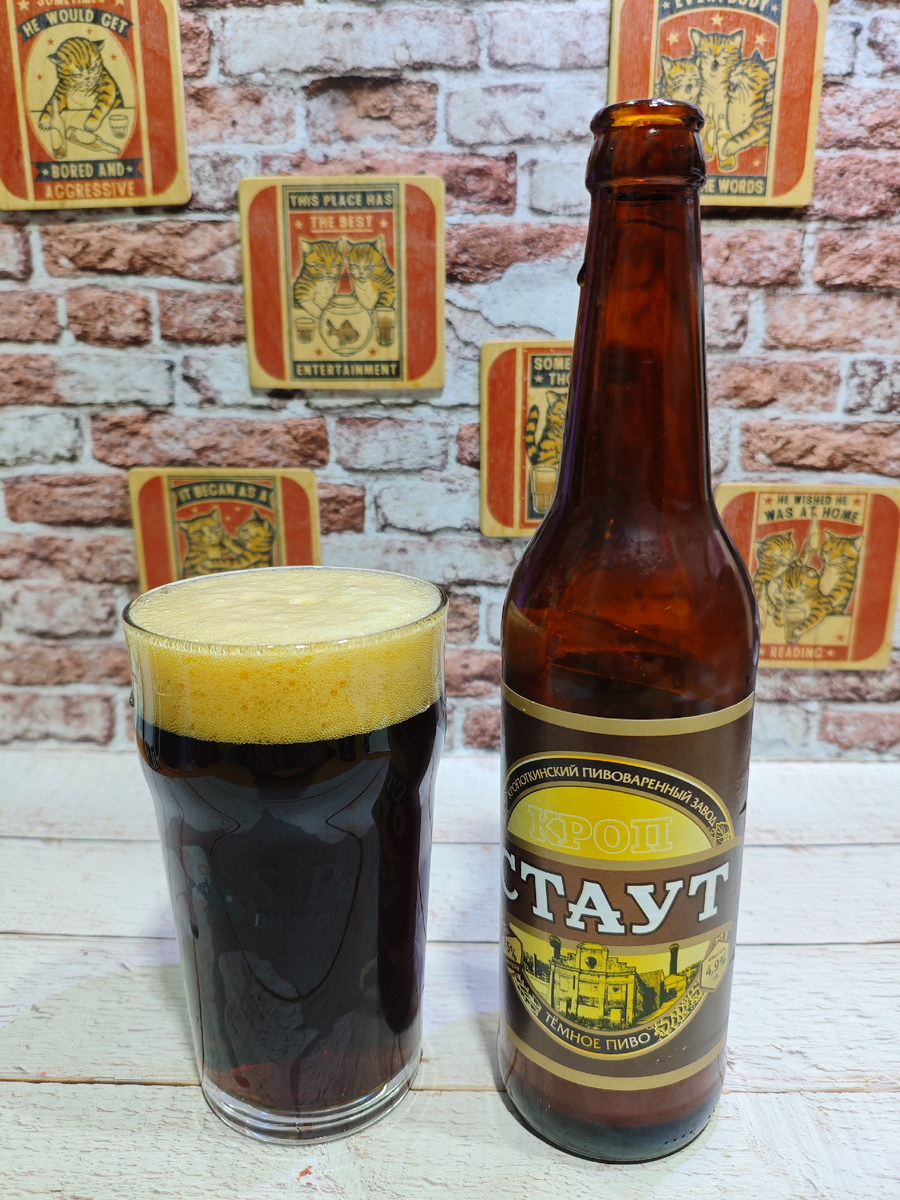 Изготовитель: ООО "Кроп-пиво", город Кропоткин Краснодарского края. На сайте пивоварни имеется описание сорта: Пиво глубокого черного цвета с мягкой кремовой и пеной. Вкус сочетает в себе шоколадный оттенок, плавно проявляющийся горечью от темного поджаренного солода. Сварено в соответствии с ГОСТ 31711-2012 «Пиво.Общие технические условия». ********************************************************************************** Плотность: 15%. Состав: вода питьевая, солод пивоваренный ячменный светлый, солод пивоваренный ячменный карамельный, солод пивоваренный ячменный жжёный, хмель гранулированный, дрожжи пивные. Срок годности: 12 месяцев при соблюдении температурного режима от +5℃ до +25℃. С даты розлива моей бутылки прошло чуть более 6-ти месяцев. ********************************************************************************** Пена на месте; стойкость так себе, но тонкой плёнкой на поверхности держалась довольно долго. В аромате жжёный солод, чёрный кофе и карамель. Не сильный, но при