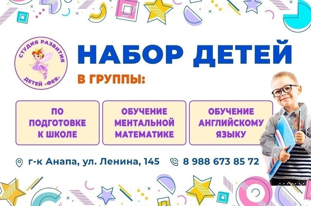 ✍️Студия развития «Фея» в Анапе ведёт набор детей в возрасте от 5 лет в группы ментальной математики, подготовке к школе, английского языка