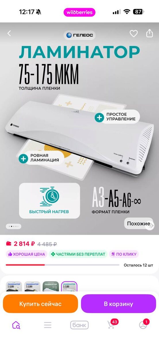 … 🙃 В чате дома увидела, что продают ламинатор *давно хотела купить себе такую штуку, у меня даже в списке хотелок есть такой пункт Сам ламинатор и КУЧУ плёнки для ламинирования 🤩 Считаю, что я хорошо сэкономила 😁 Вместо ~4200₽ потратила 1500₽ 🙃